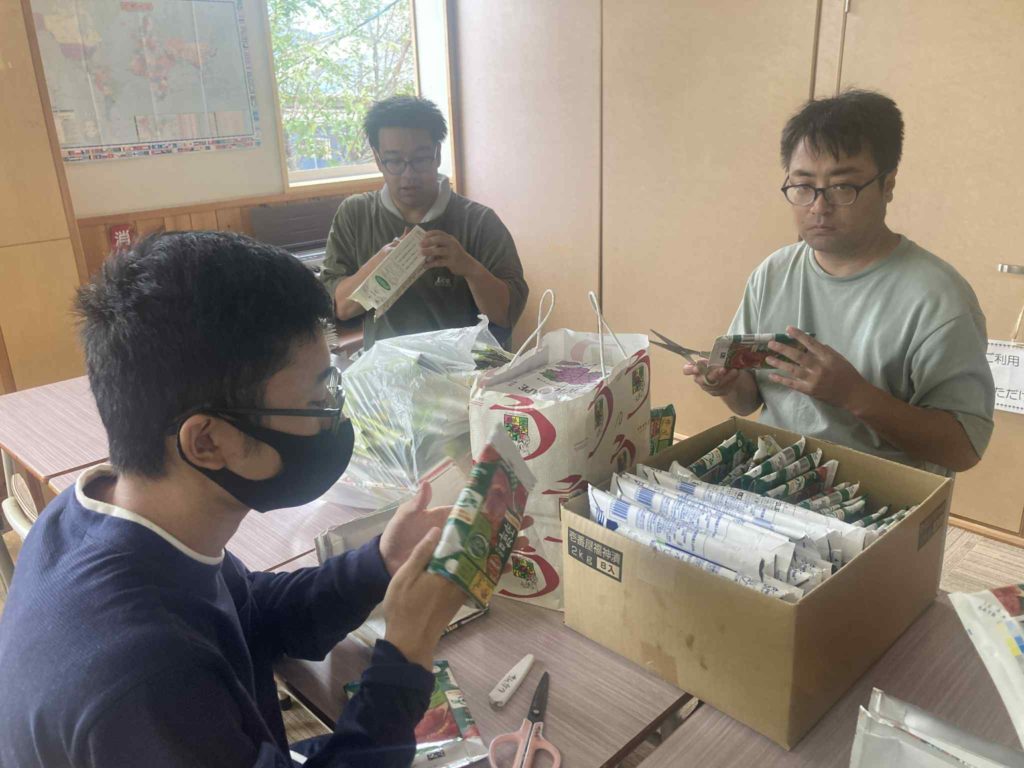 先日、長野県理容生活衛生同業組合上小支部などからご寄付いただいたテトラパックを仕分けしました。先日いただいただけでも602枚!綺麗にあらって、たたんで頂いてからのご寄付なのでとてもありがたいです。作業も進み、全て開いて、ダンボールに詰める作業が完了しました。