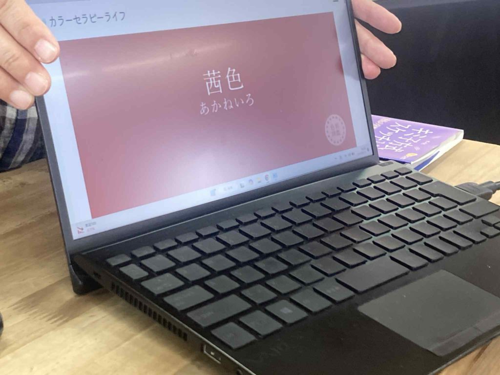 などワードを聞いて、そのワードで自分が認識している色をつくるワークをやりました。