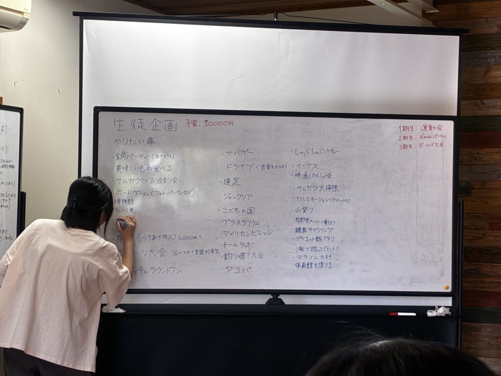 今日は一足早く、生徒企画で何をしたいか案出しを行いました。