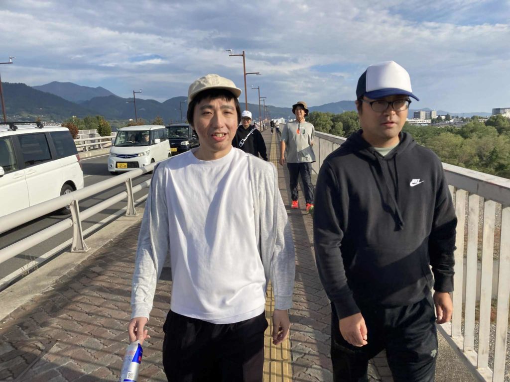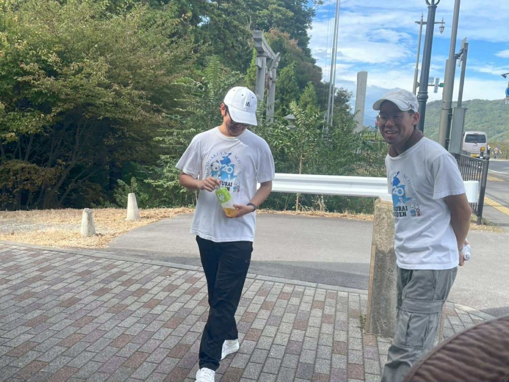 「初めて42キロくらい歩いた。こんなにきついと思わなかった。歩くペースが落ちて、スタッフに追いつけなかった。次は一緒に歩きたい。ペットボトルで歩きながら水分補給は大事。トンネルを歩きで通ったのが初めてだった。理事長のマッサージをやってもらい回復した。無事に辿り着いてよかった。」
