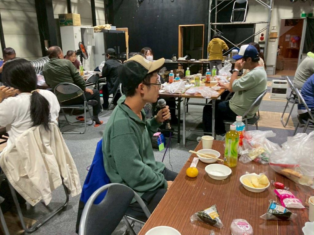 打ち上げは、保護者の皆さんと食事スタッフが作って下さった豚汁うどんをいただきながら(疲れた身体が温まりました)、打ち上げの会でした。