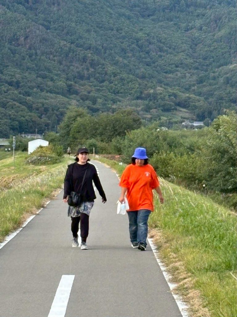 「 初めての遠足だったけど、無事に完歩できて良かった。千曲橋まではしんどかったが、理事長のマッサージのお陰で道の駅まで軽く行けた。マッサージの大事さ効果を実感。」