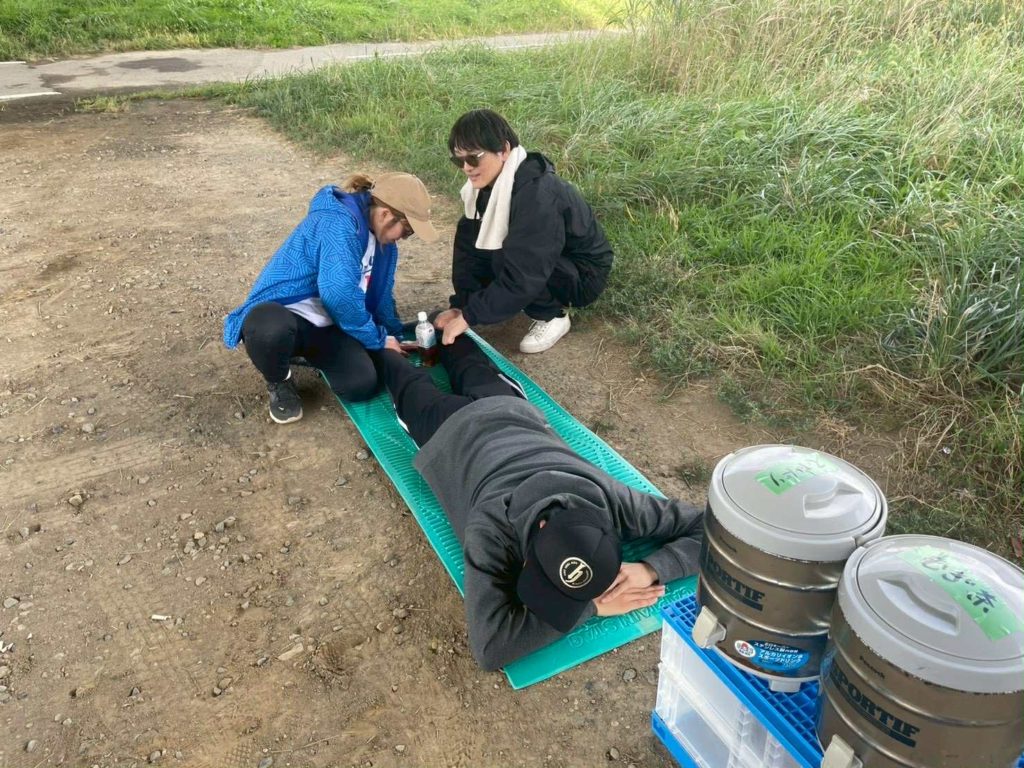 「足がすごく痛くて、もう何もできないですが、 ゴールできて 良かったなって本当に思います。 反動が明日きそうで、ちょっと不安です。本当に休もうと思います。 」