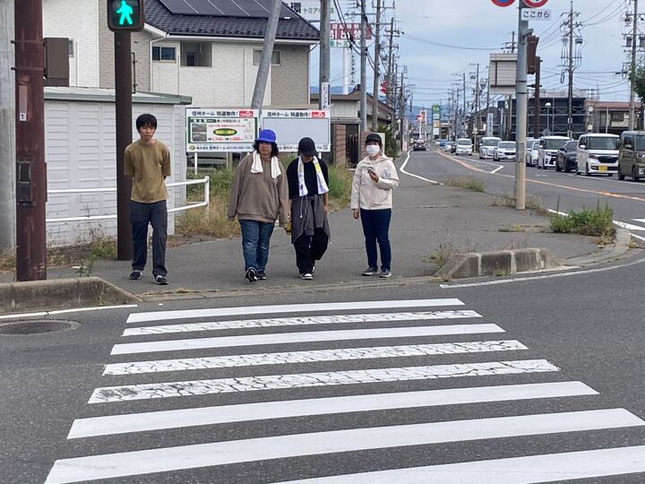 善光寺から長野市と千曲市の境の篠ノ井大橋までは、市街地を歩きます。歩道が整備されているところもありますが、歩道が狭いところもあり、他の歩いている方と譲り合いながら歩き進めます。「おはようございます。」と声かけあったりして気持ちよく進みます。
