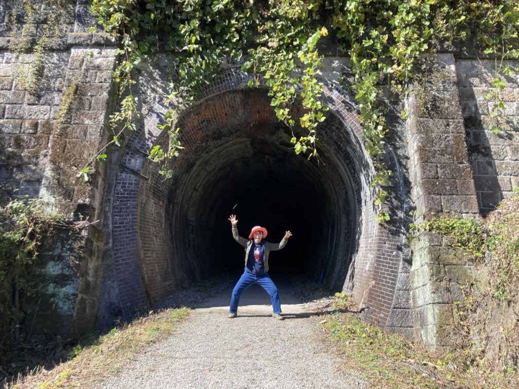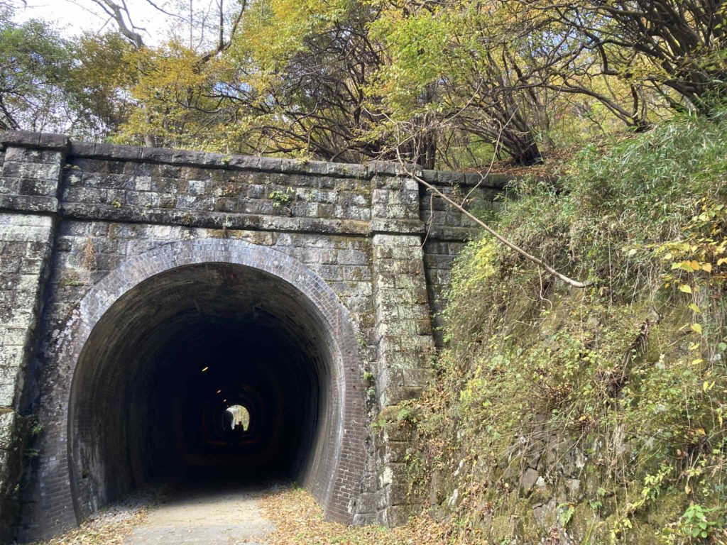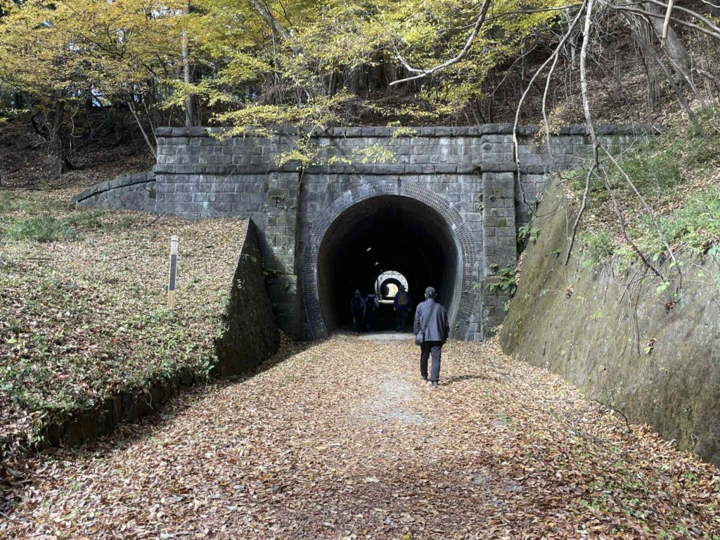 景色を楽しみながら、いくつかのトンネルを抜けて歩くこと40分程度でめがね橋に到着しました。