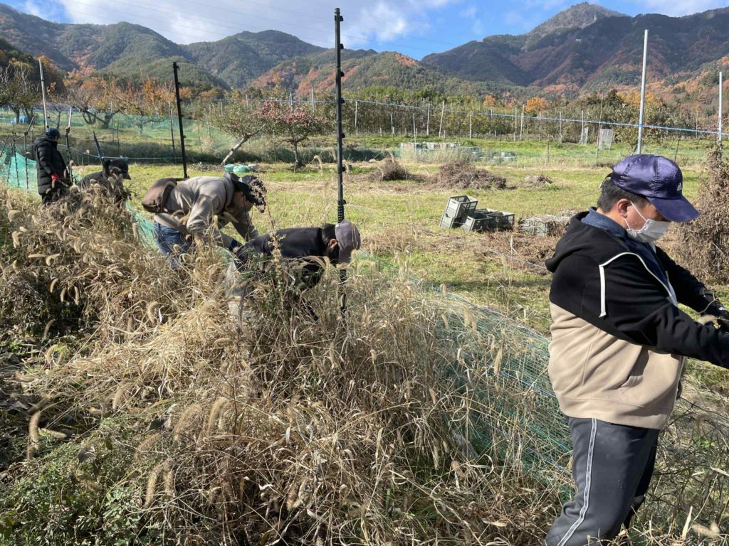 今日は金曜日ですので、午前中はジョブタイムにいつもお世話になっております、千曲市の農園に伺いました。今日の作業は、草刈りと枝取りの作業でした。世の中には、リンゴの収穫の時期ですが、草刈りや枝取りなど美味しいリンゴが出来るには、大事な作業です。