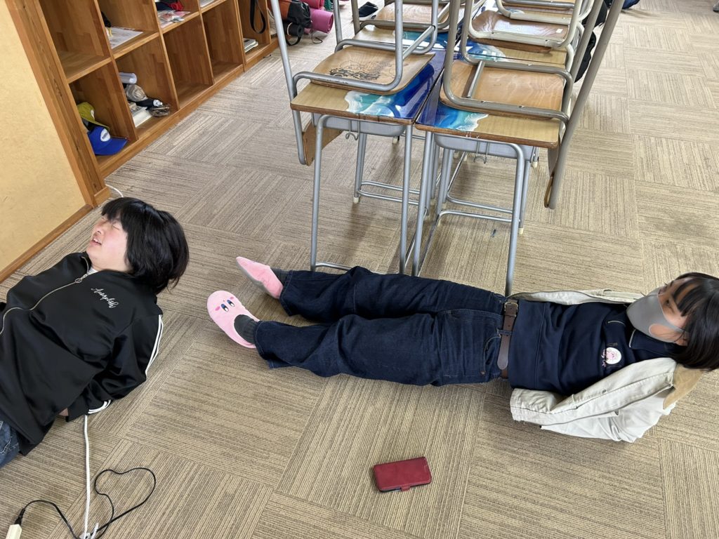 朝の会の後は恒例の筋トレです。今日は表プランクと裏プランクです。(表・裏って言うのか…?) 表裏はだいぶ慣れてきましたが時々投下される左右脇腹プランクはまだキツイという人が多いです。(左・右っていうのか…?)