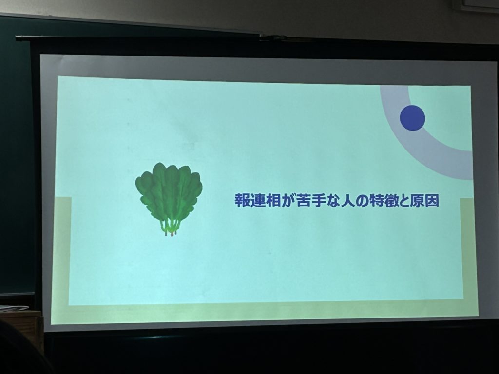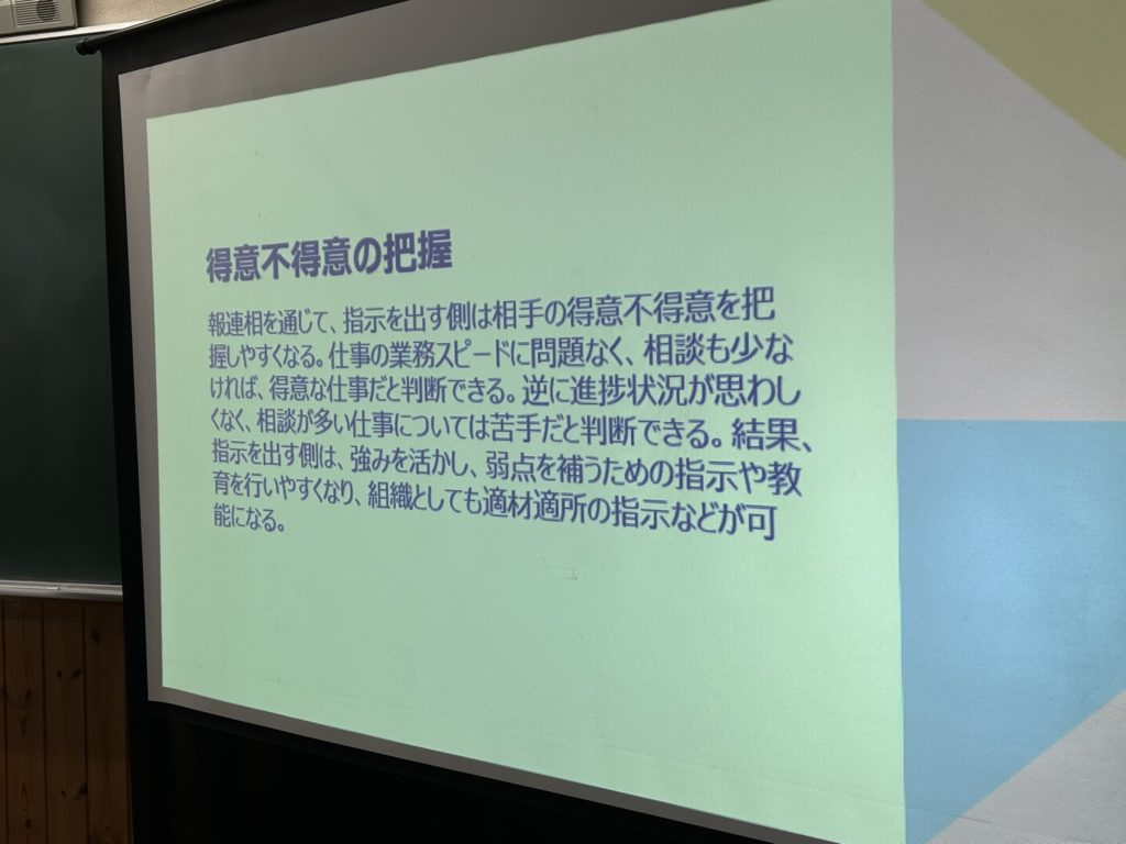 2コマ目は座学で「報連相の重要性」について講義を受けました。