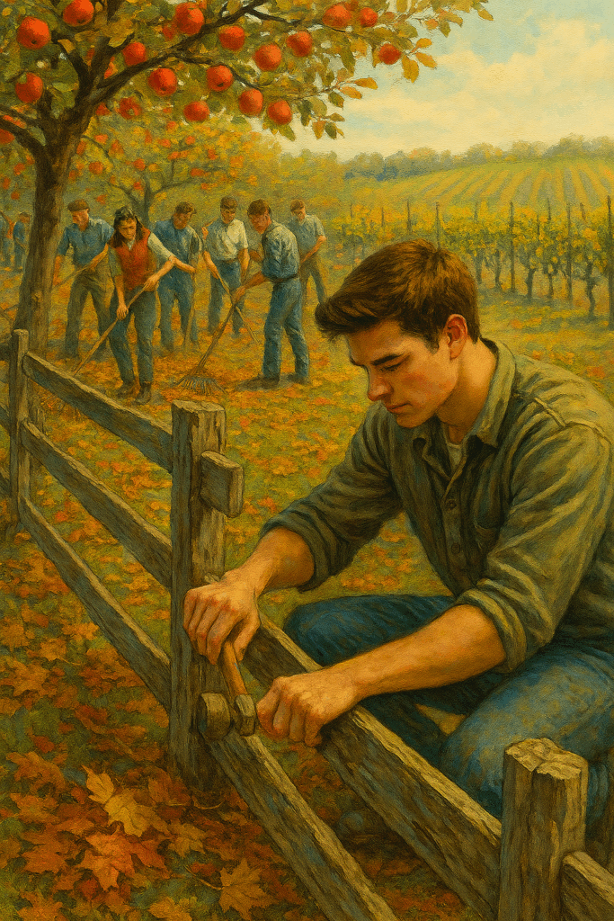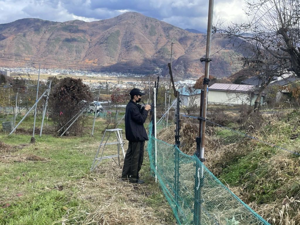 そして、「リンゴ畑の柵を補強する男子」