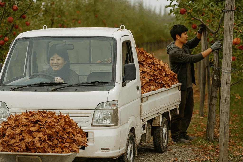 次に「軽トラで落ち葉を運ぶ52歳女性」