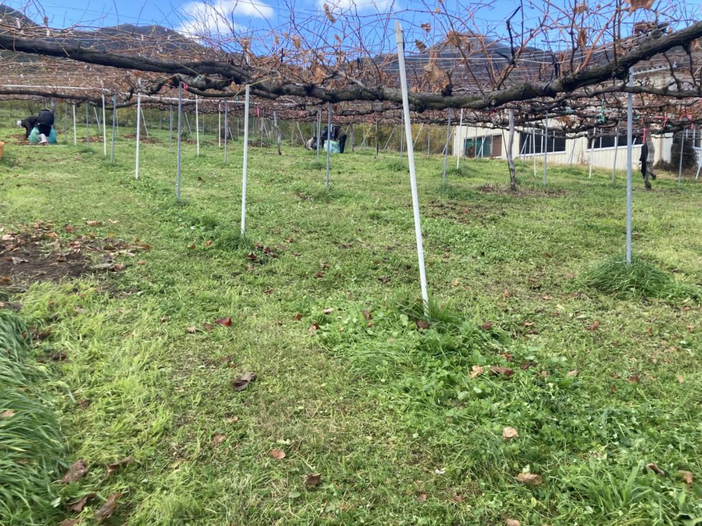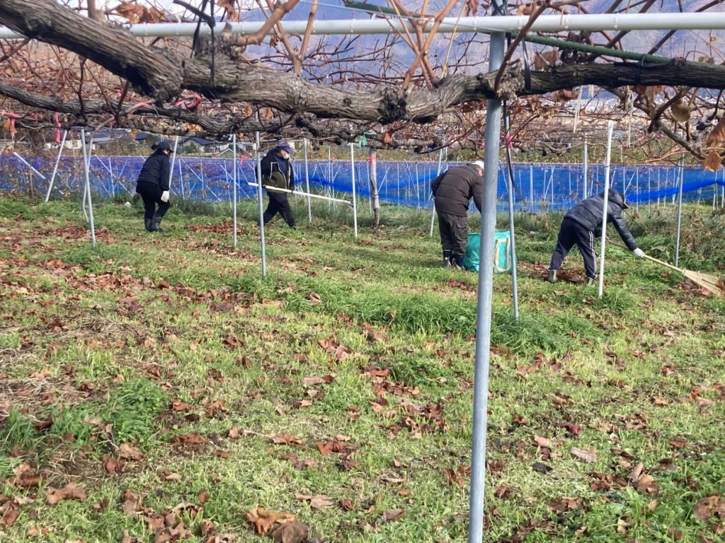 鹿が侵入してしまった柵の補強とブドウ畑の落ち葉拾いでした。