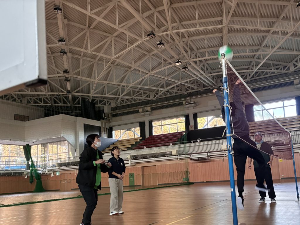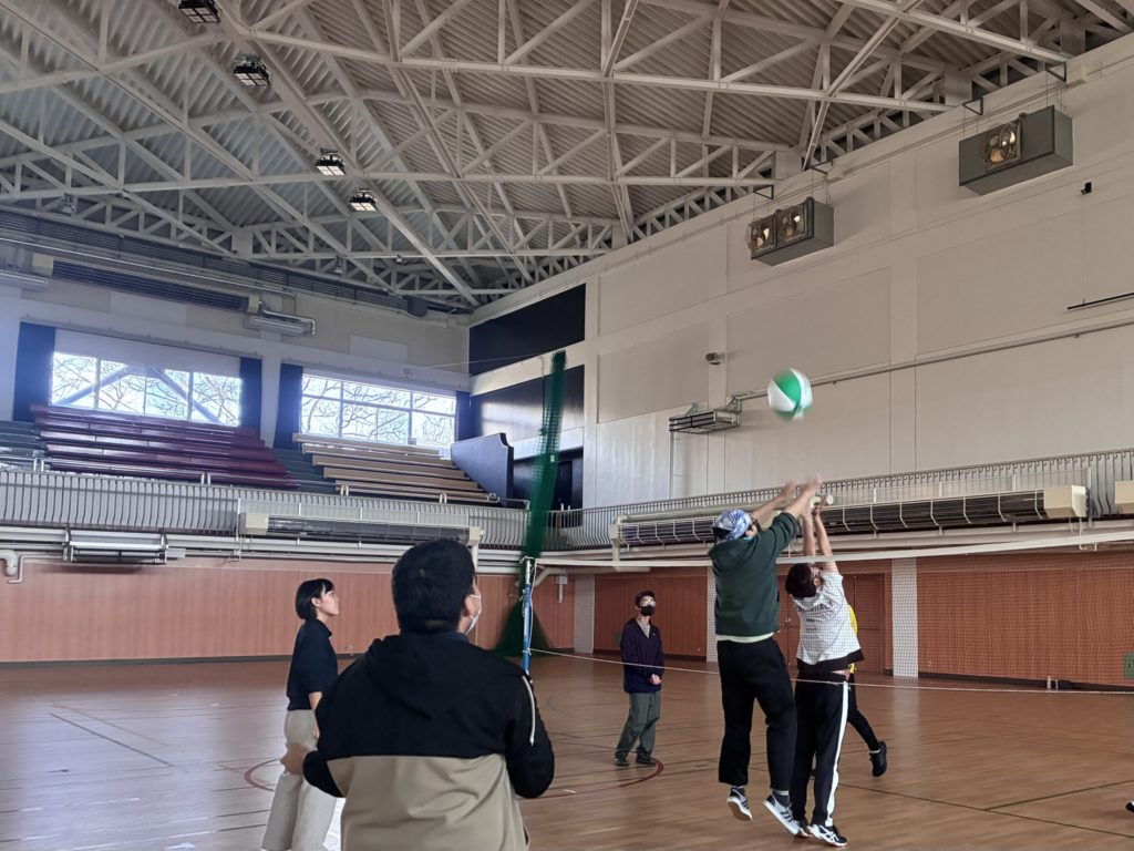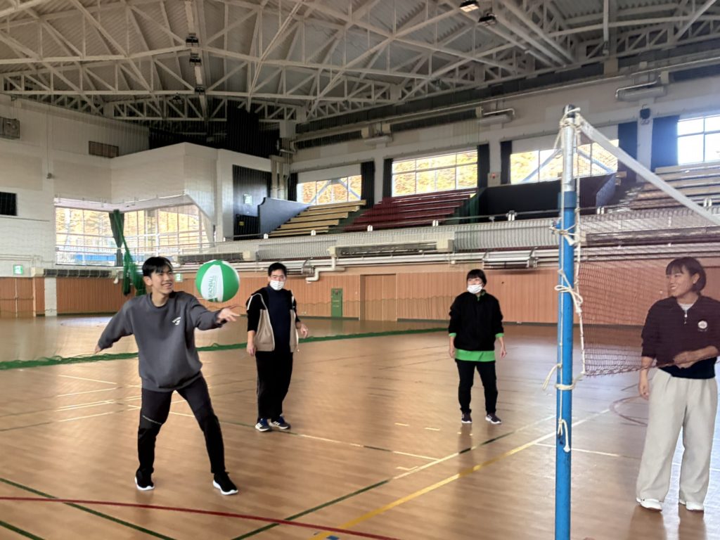 午後は、体育館でビーチバレーをしました。