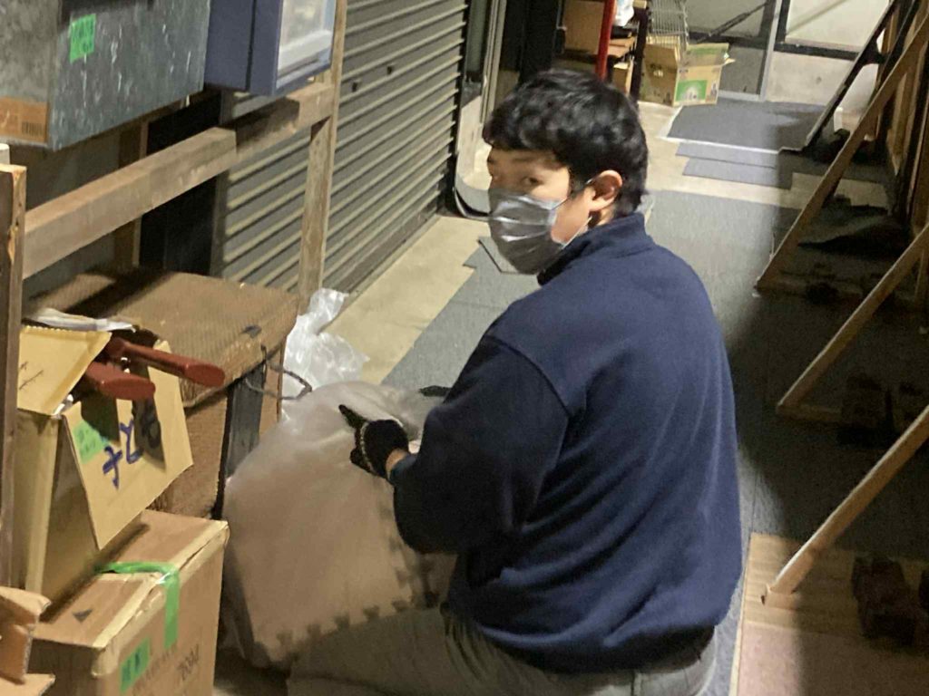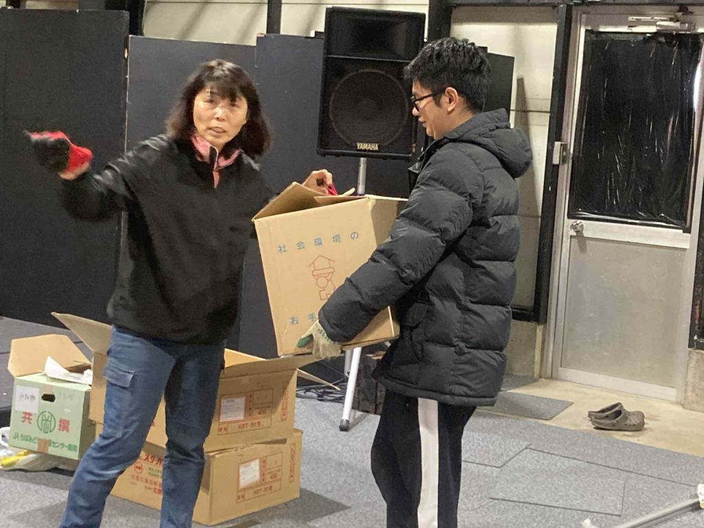 ホールの裏は、色々なものをしまっているのですが、4月の学園祭でしまったグッズも、マルシェなど様々なイベント使用した際にしまう場所がばらけていたので、一度表にだして、分類し、箱に何が入っているか分かりやすい用に養生テープで内容を書き、綺麗にしまっていきました。
