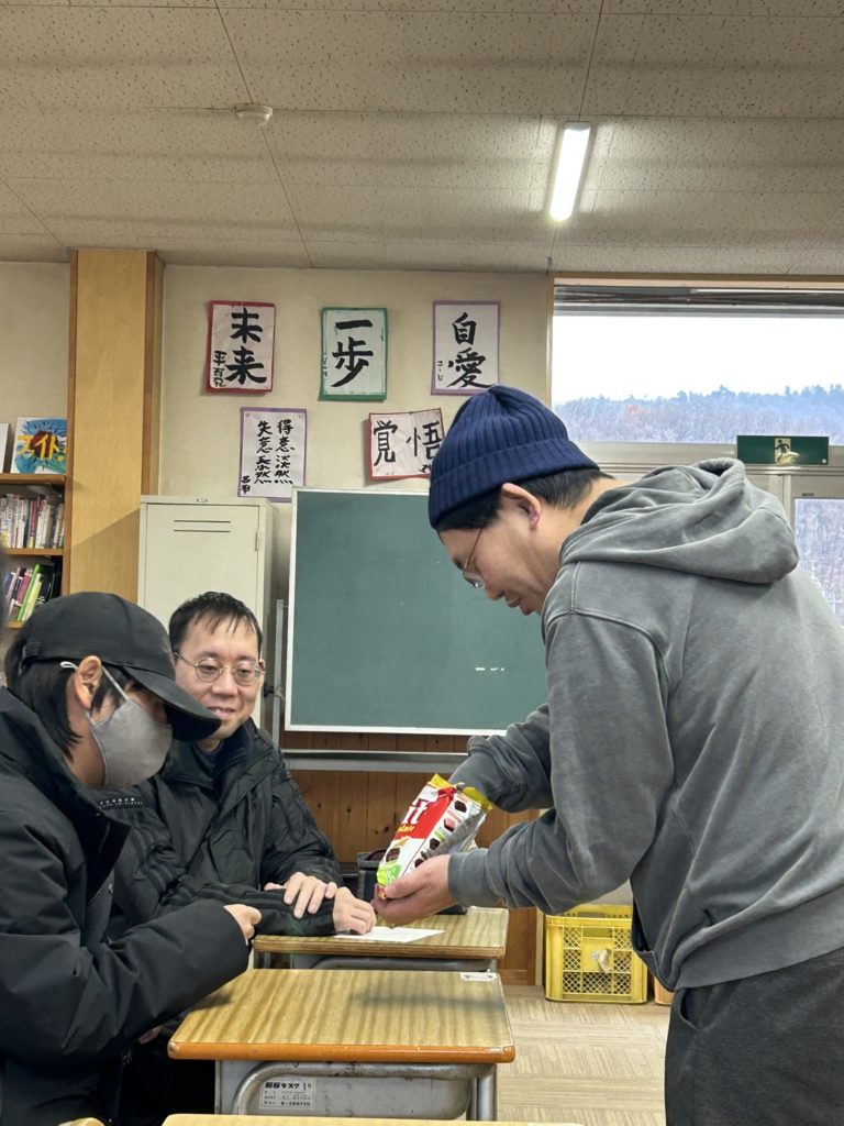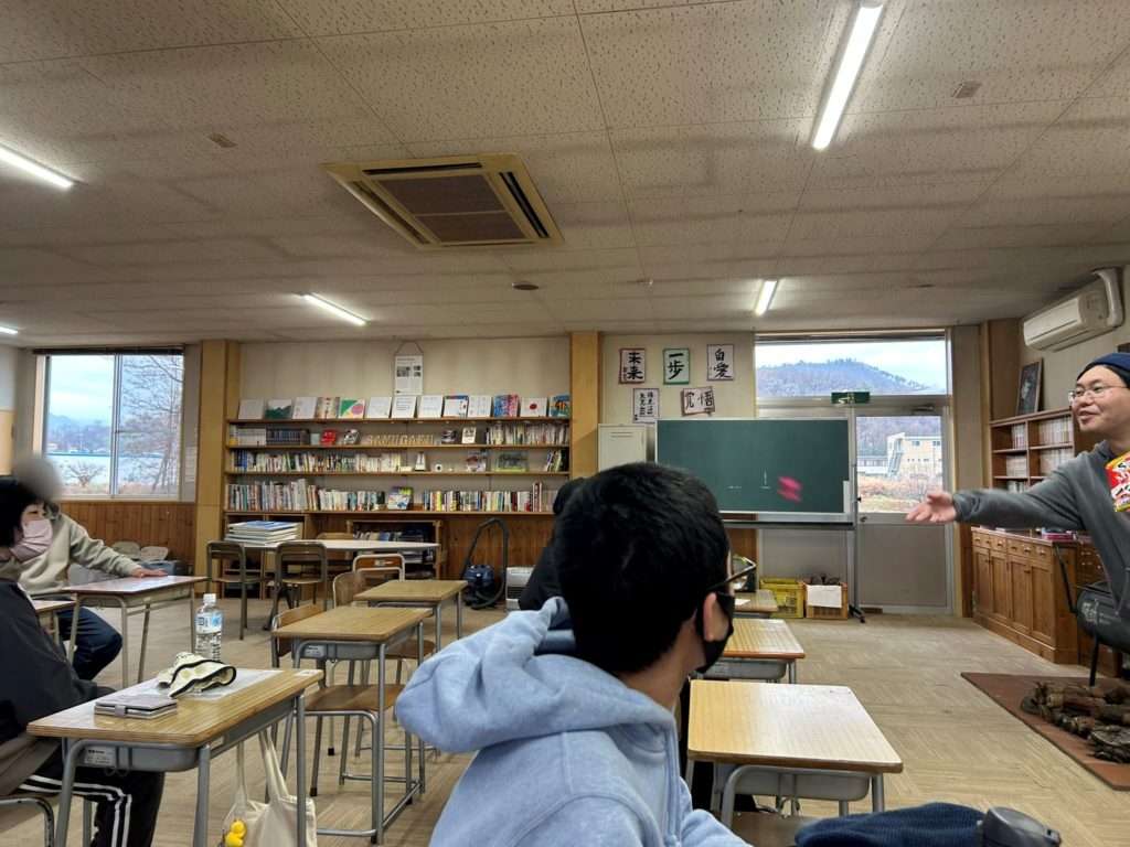 帰りの会では、栗原校長より、頑張ったご褒美のチョコレートが教卓から各生徒の席に投げられるというお振る舞いがありました。ナイスキャッチ!