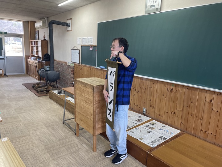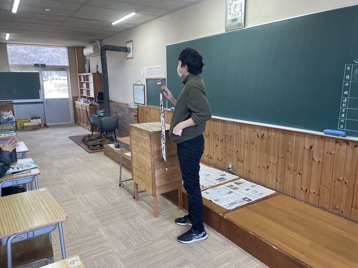 納得いく字が書けたら、みんなの前でなぜその字にしたのか、どんな1年にしたいのかを発表しました。