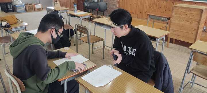 修学旅行に行かない生徒は、今週のスケジュールを総務スタッフと一緒に話し合って決めました。