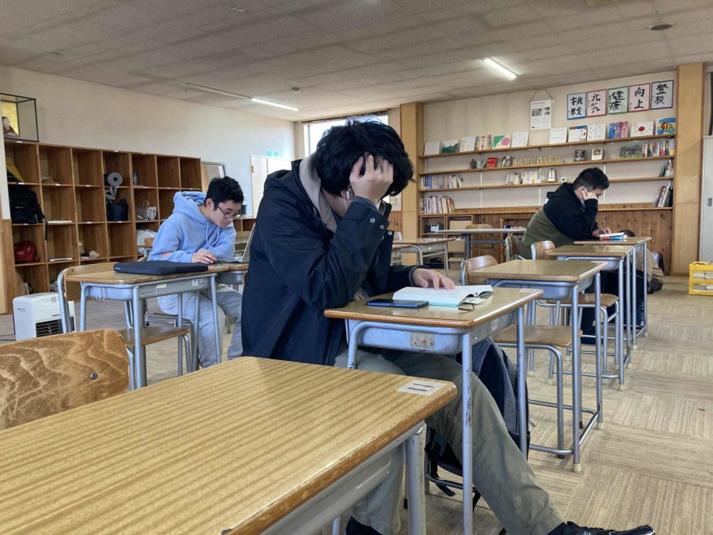 午前中は、まず「本気の志」読書をする生徒が多いですが、それぞれ課題を持ち、それに向けて取り組む生徒もます。MOS試験の試験勉強をする生徒、散歩に取り組む生徒といます。