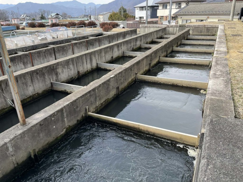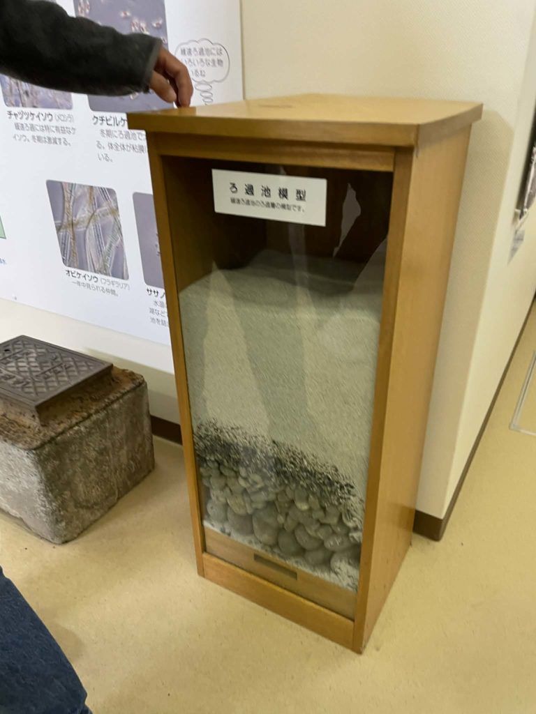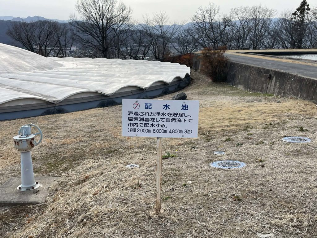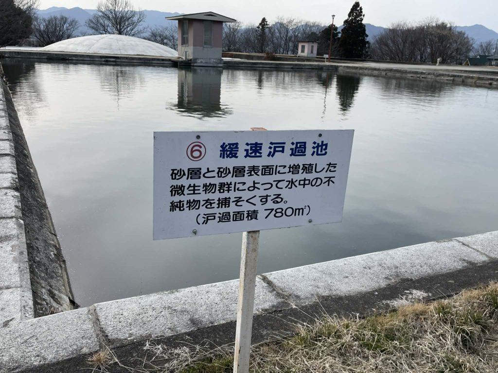 そんな水が着水井、凝集池、沈でん池、緩速ろ過池を経て配水池に達します。