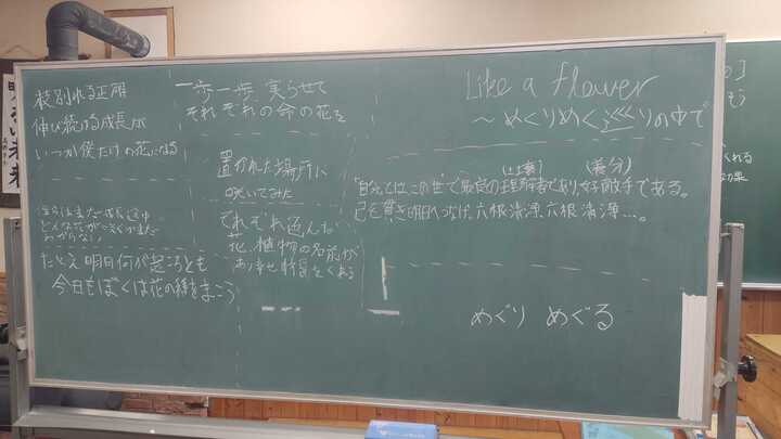 今日の午前1コマ目は、学園祭のテーマ決めでした。「花と植物」をコンセプトに準備を進めていますが、パンフレットなどに載せていくキャッチコピーを選んでいきます。
