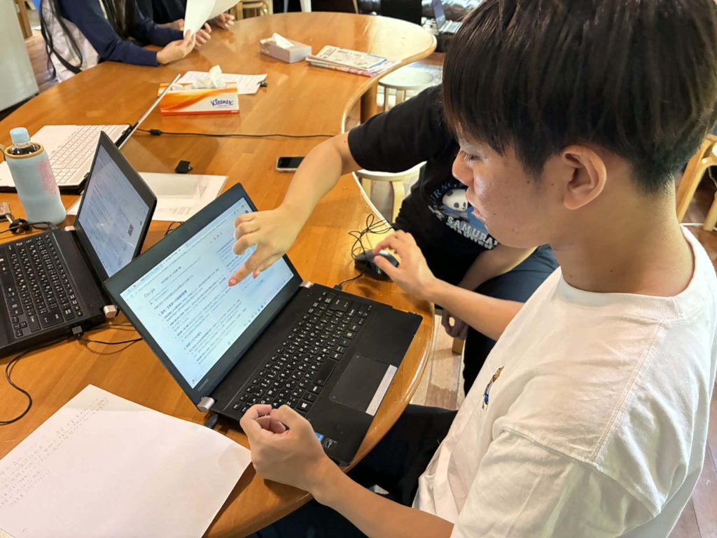 こちらの二人は学園祭で沖縄校のことを紹介するためのパワーポイントを作っています✨
